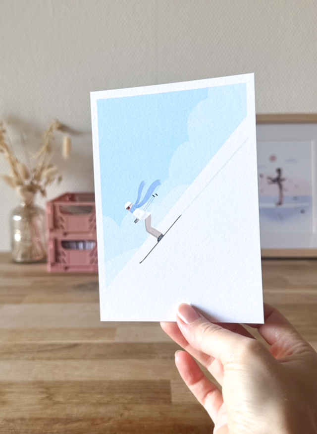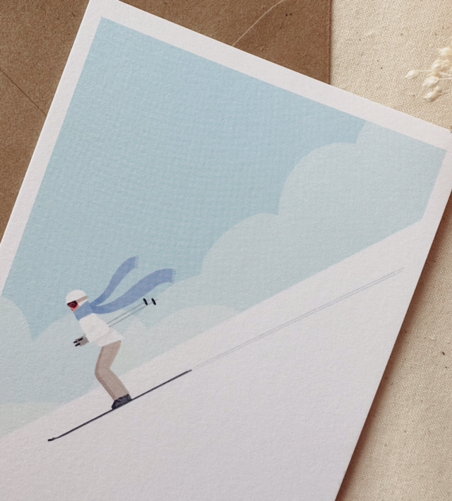 Carte Skieuse à écharpe bleue