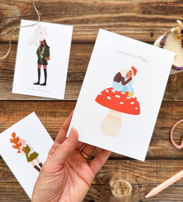🇫🇷 Carte imprimée en France à Annecy, entre lac et montagnes. 🔖 Papier 350gr de qualité supérieure, légèrement texturé et éco-labellisé. 📏 10,5 x 14,8 cm 〰️ Impression recto-verso ✉️ Enveloppe en papier recyclé livrée avec la carte